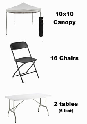 Support local: when you choose this Party Rentals 10x10 Tent, 2 Tables, 10 Chairs in Greater Springfield, you’re working with a small, community-focused crew who cares about making your event a success. Reach out today and let’s make it happen together! π