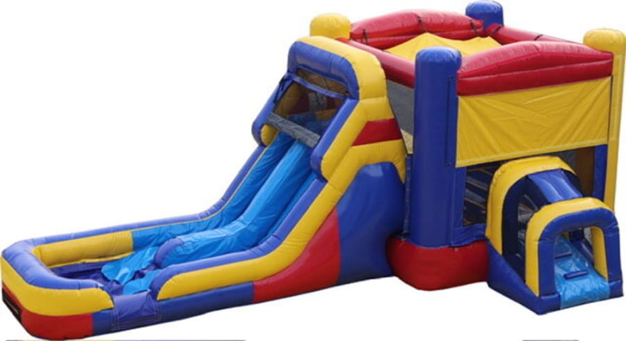 New combo bounce house with double lane wet or dry slide with new safety entrance