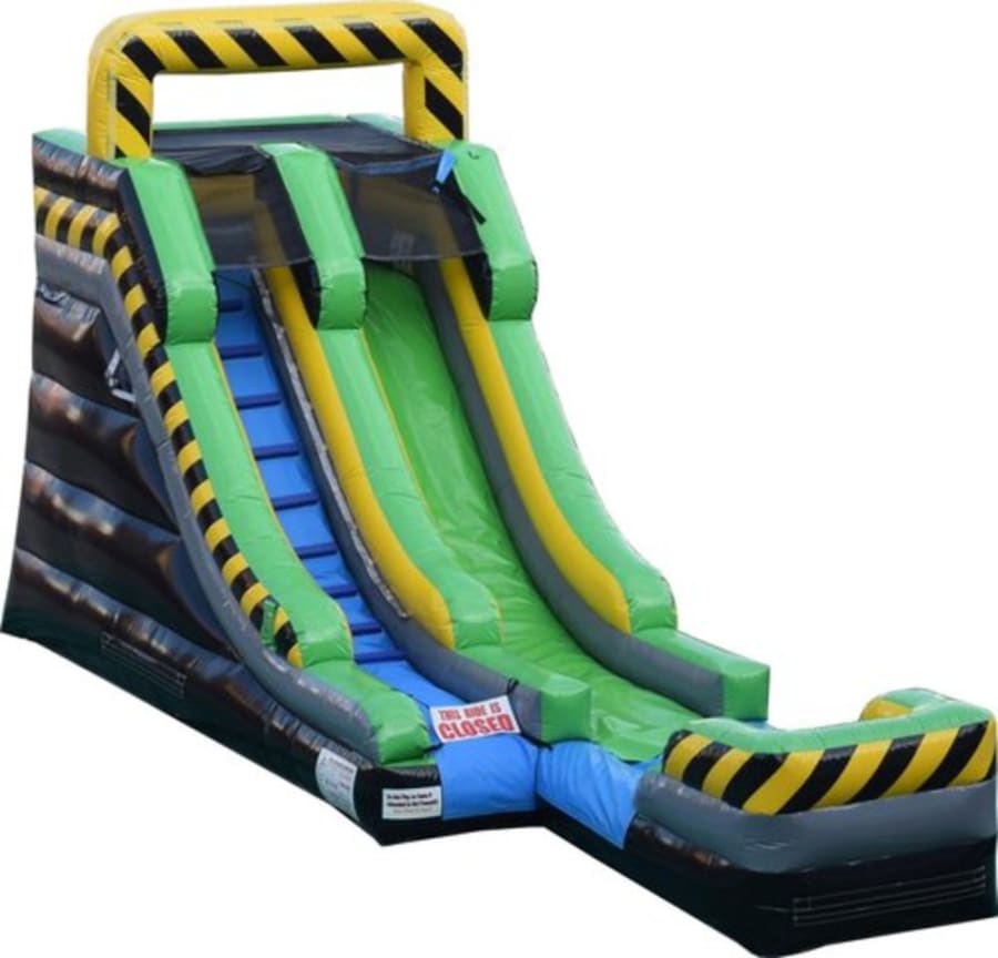 Turn any backyard into a mini waterpark with our 15 foot single lane extreme wet slide. This caution-themed wet & dry slide measures 28' long × 11' wide × 15' tall, delivering thrilling height and a long splash zone for maximum giggles and minimal grown-up boredom. Ideal for birthday parties, family fun days, or that block party that needs an upgrade. ποΈπ