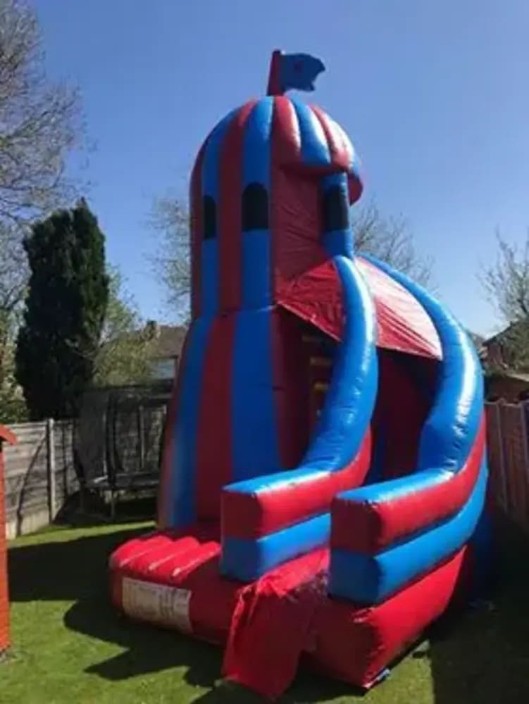 This amazing helter Skelter party slide is the ultimate attraction at any party, function, fete, school or corporate event. It stands 24ft high and with its stunning red and blue colours really does look fantastic.